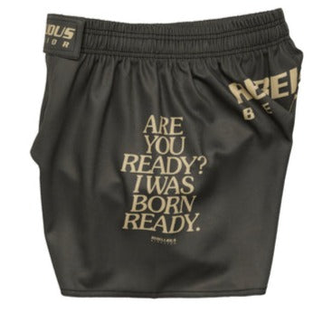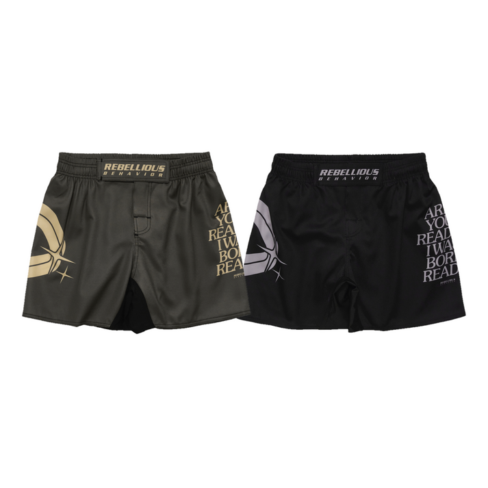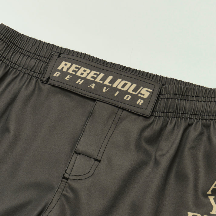 REBELLIOUS BEHAVIOR ARE YOU READY? FIGHT SHORTS (BROWN)